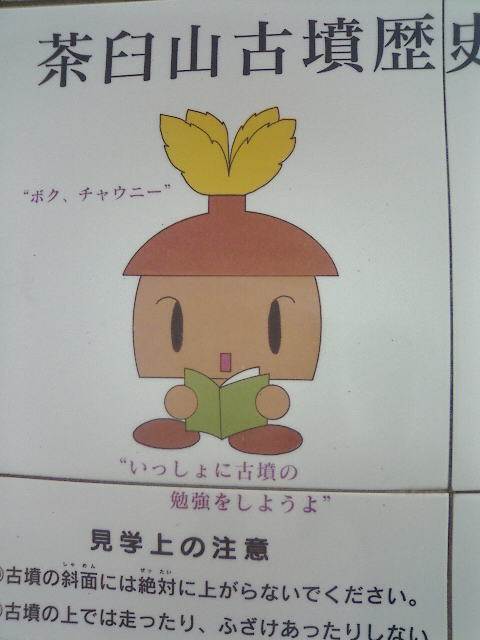 | こんどこそインターネットで調べてた古墳です! 茶臼山古墳っていうそうです。 地図見るからにでかそうです。期待も膨らみます! ちなみにチャウニーはここのオリジナルキャラクターです。 | ||||||||||||||||||||||||||