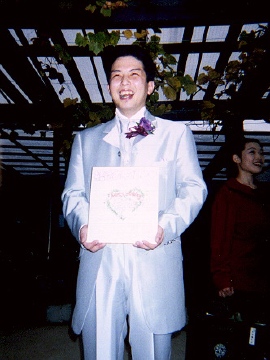 広永さんご満悦! 今回は柄にも無く僕が色紙を提案! でも相変わらず切羽詰まって完成したのは 式が終わったころやったな〜。 色紙を詳しくみたいと思ったあなた! 広永さんのもっている色紙をクリック! |