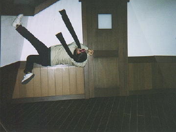 重力がなくなってドアにしがみつく男。 | ||||||||||||||||