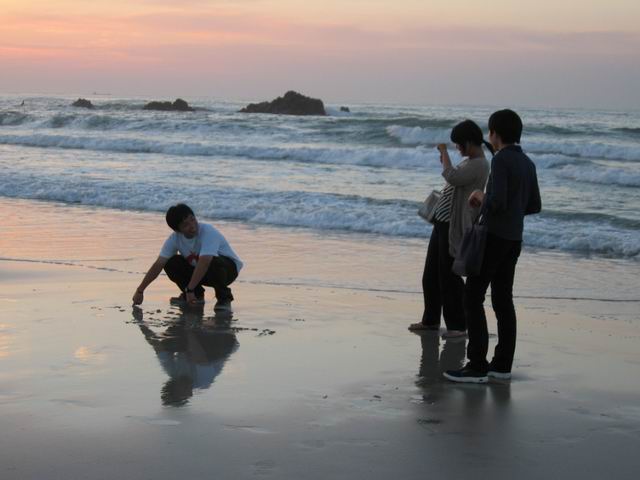 せっかくだから、砂浜に文字とか書いて、打ち寄せる波に消されたりしてみました。