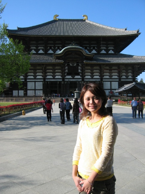 大仏と2ショット。ここって珍しく写真OKなんだよね。普通NGなのに。でも残念なのはかなり観光向けの寺なので、ちょっと趣がなかった。アミューズメント寺って感じでやっぱ修学旅行むけなのかなぁ〜と思った。