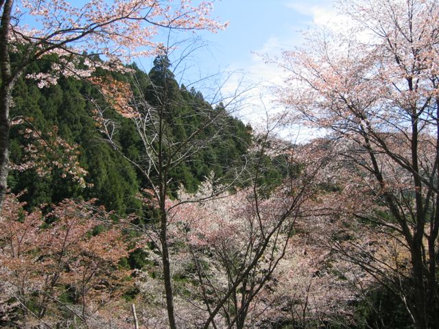 なんと今年は吉野の桜も残るは奥千本のみとのこと。上千本までは車で行けるのですが奥千本は2キロほど山道を歩いて行かなければたどり着けない秘境。ズボンの裾をめくりあげていざ出陣なり。まぬけ・・