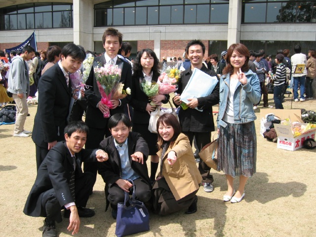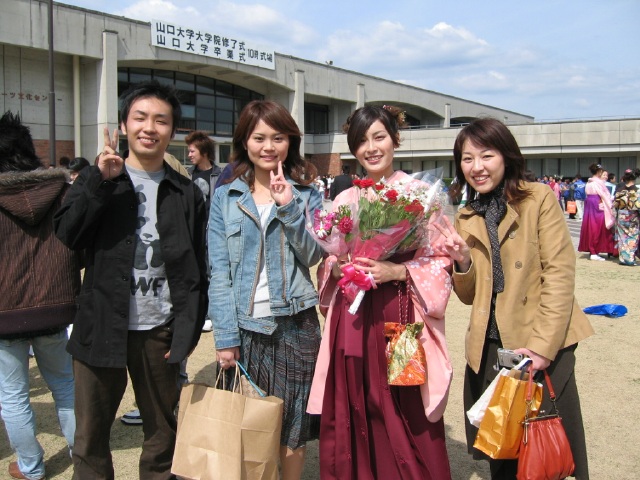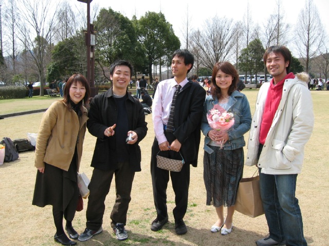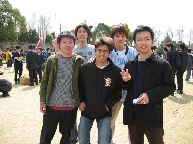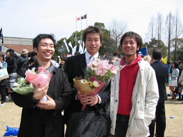 などと遊んでるうちに・・ ど〜ん!うっちゃん登場! 卒業できてよかった。 しかし、なぜか両脇のメンズ2人のほうが誇らしげ。 | |||||||||||||||||||||||||