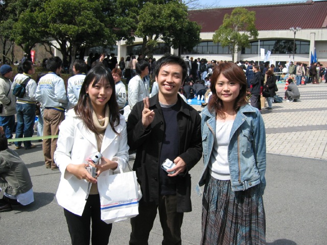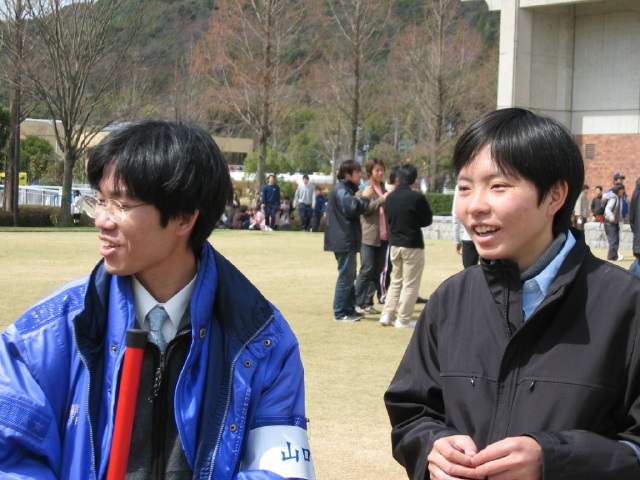 | 謎の儀式を繰り広げる2人。そういえば、うっちゃんと坪井さんTV局の人にインタビューされてたけどあれ放映されたのかな?坪井さんはカメラに向かって『卒業したら警察官になって山口県民を守りたいと思います!』ってコメントしてたらしい。見たかった。 |