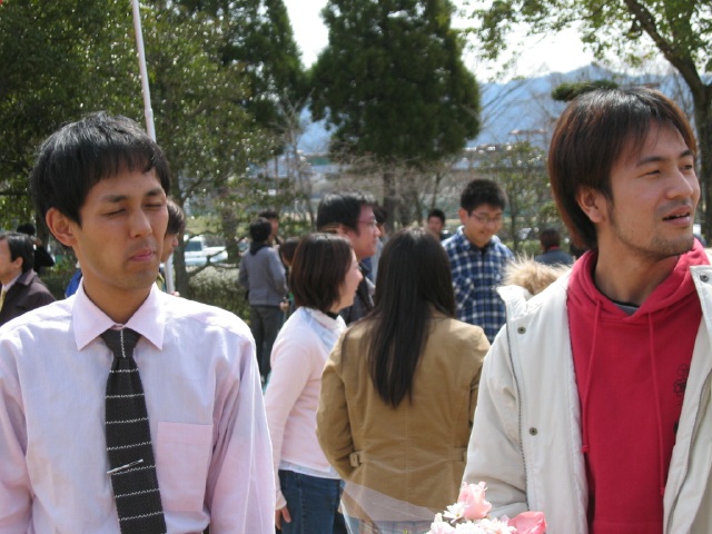 | ど〜ん!パート2 偶然駐車場で誘導してる中司さんを発見。無理矢理拉致して卒業式に連行しちゃいました。 |