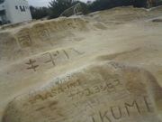 | 千畳敷の拡大写真。 かなり落書きというか落彫刻が掘られてて、 ちょっとどうなーん!って思ったけど、 なんかアメリカの壁画みたいで これもひとつの歴史だなーとよく分からんことを思った。 1980年代の書き込みもあってびっくり。 |