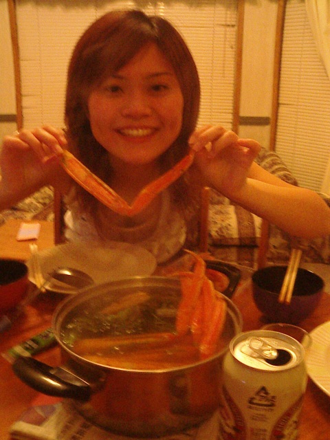 | 今回は食い物のうまい南紀ってことで食事はすごいよー! ちょっと食べた後だけど左はクエだし、右はカニ!冬の高級食材オンパレードですわ。 他にもカキやヒラメなど新鮮な魚介類をたくさん買って来て、キッチンもあるんで、鍋にぶち込んで食べちゃいました。 |