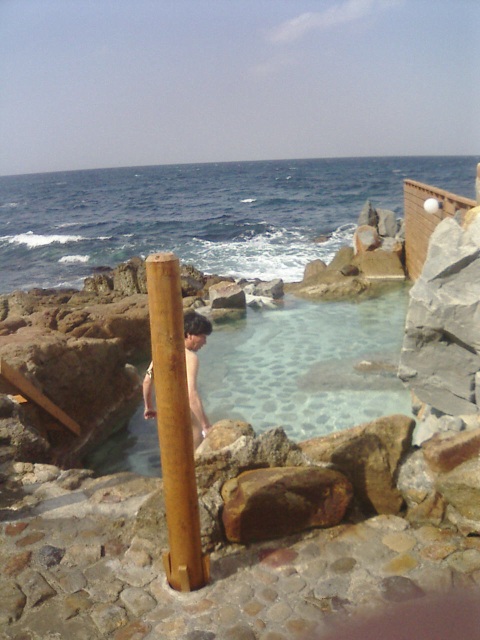| 白浜といえばやっぱり温泉でしょ。 名湯『崎の湯』 です!おっと、おじさん絶妙セーフ。 ここはマジで気持ち良かった!絶景! すぐ先はほんとに海でしぶきが上がってます。 公衆浴場なので気軽に入れるし、近くまで行ったら、行かなきゃ損するよ。 |